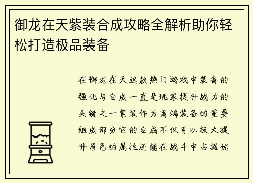 御龙在天紫装合成攻略全解析助你轻松打造极品装备